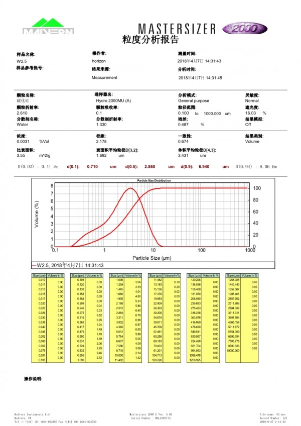 W2.5綠碳化硅微粉是選用優質大結晶碳化硅塊經破碎、精密分級而成,品質穩定,結晶好,表面清潔度高,無大顆粒,細粒含量少,粒度分布集中,研磨效率高。