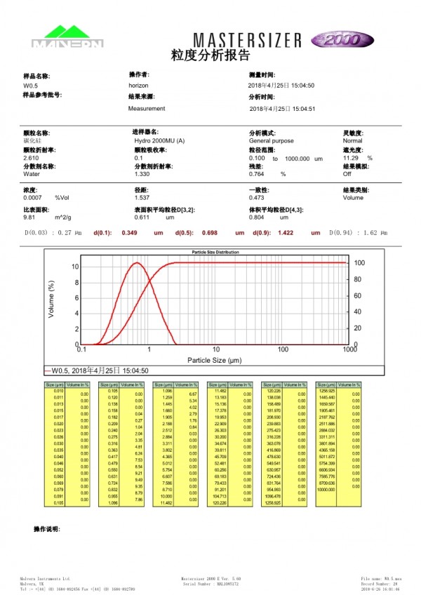 我公司生產的W0.5超細SIC微粉,因其純度高、粒度分布窄、流動性好、穩定性強等優點。